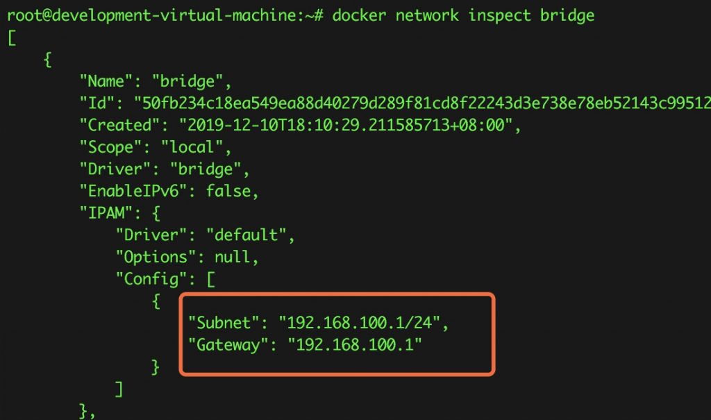 为什么这里的新建的子网网段与bridge不一致呢?我实在无法理解,这种模式反而与NAT模式一样,新建的虚拟机网络成了docker0下面的一个子网,这个子网的ip又与docker默认的网段相同。但如果是这样的话,虚拟机的网络根本就不会在外界暴露出来,也就不会导致和其它的网段冲突……